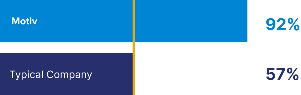 92% of employees at Motiv say it is a great place to work compared to 57% of employees at a typical U.S.-based company*